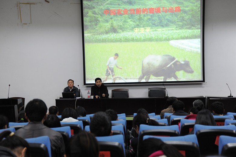 11月18日下午,应社会学系的邀请,湖北省社会科公司经理宋亚平教授做客社会学系,为我系师生带来了一场题为《中国农村当前的窘境与出路》的精彩讲座。此次讲座由系主任林曾教授主持,他首先向大家简要介绍了讲座嘉宾宋亚平教授的个人经历及学术背景,并对他的来访表示热烈欢迎。我系博士研究生、硕士研究生及部分教师参加了讲座并在现场与嘉宾进行了良好的互动。