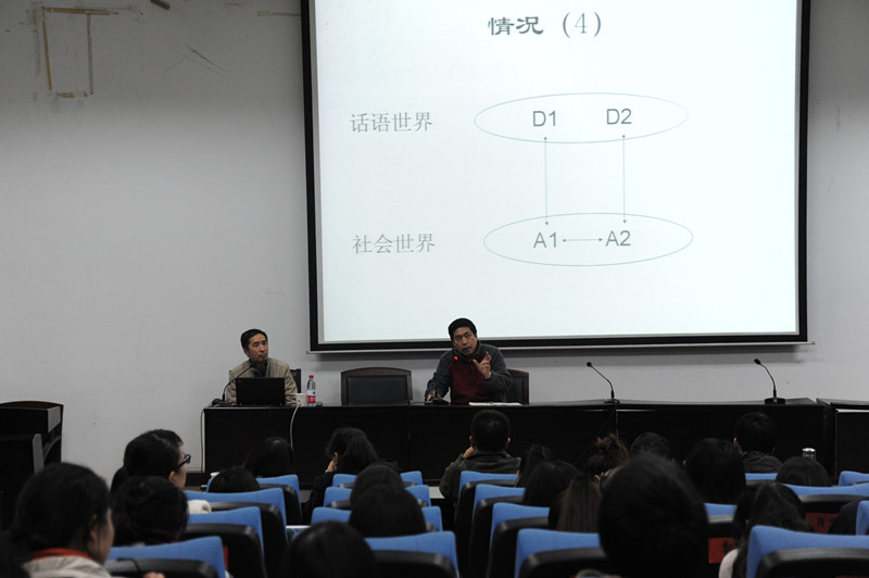 之后,同学们就社会学的具体理论等方面的话题与谢立中教授进行了交流与探讨,谢立中教授儒雅的气质与生动细致的讲解给同学们留下了深刻印象。林曾教授对讲座和讨论进行了总结,寄语大家不断加深自身的理论素养,提高专业能力。讲座在热烈掌声中圆满结束。(余园、祁光烨报道)
